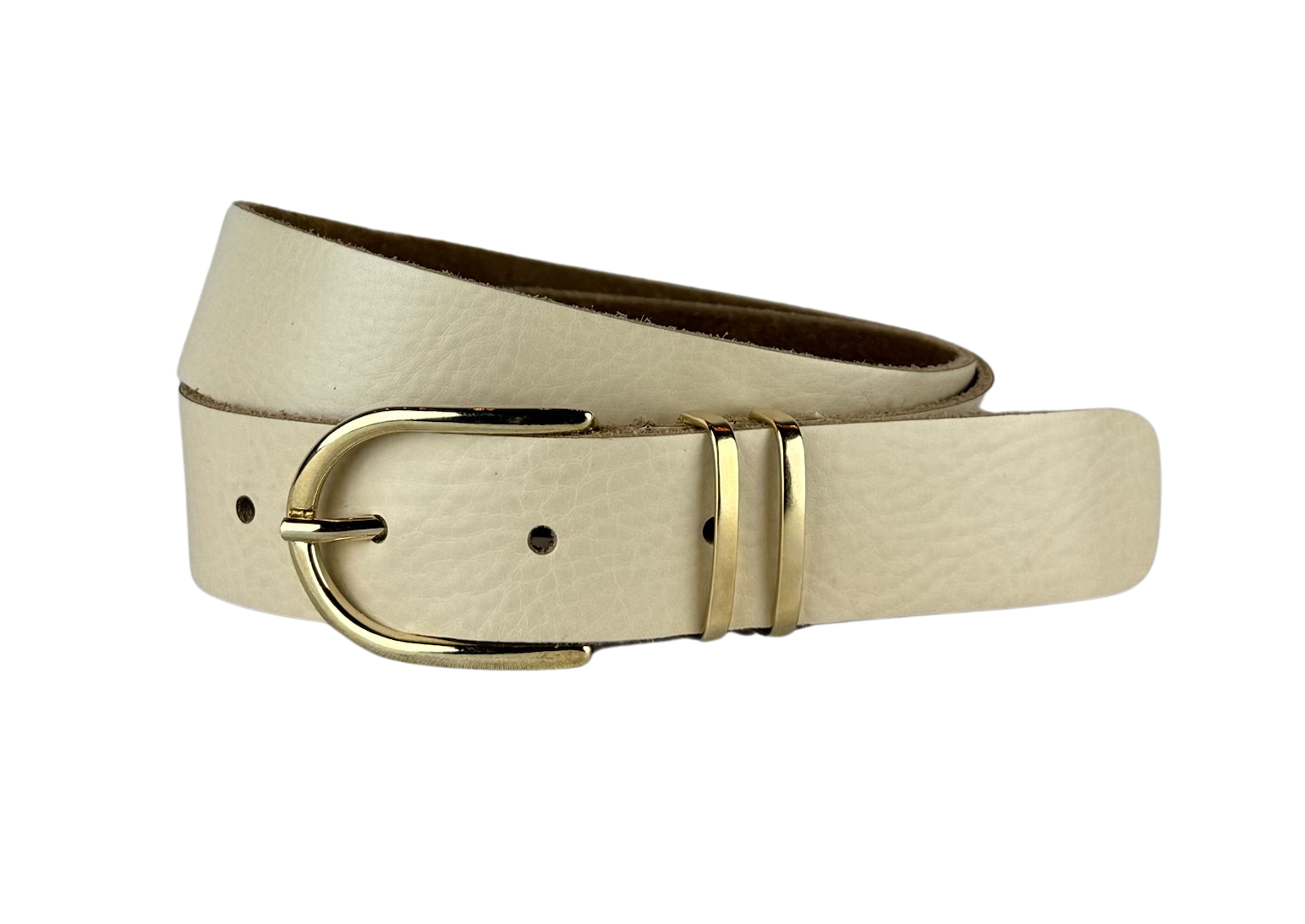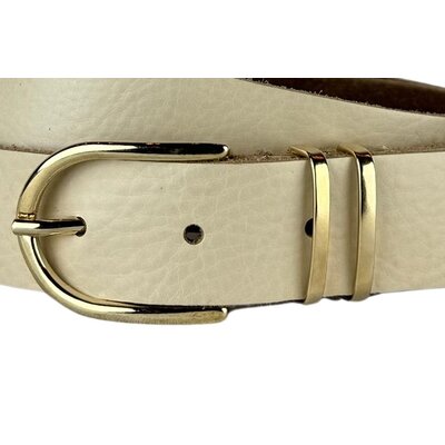 Elvy Fashion beige 3 cm brede riem afgewerkt met gouden gesp en lussen.