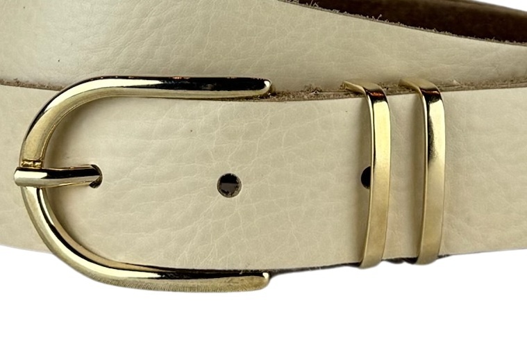 Beige 3cm brede riem van suede soepel 3mm dik echt leer. Deze riem met mooie afwerking en gouden gesp is mooi te combineren met de trends van dit jaar.