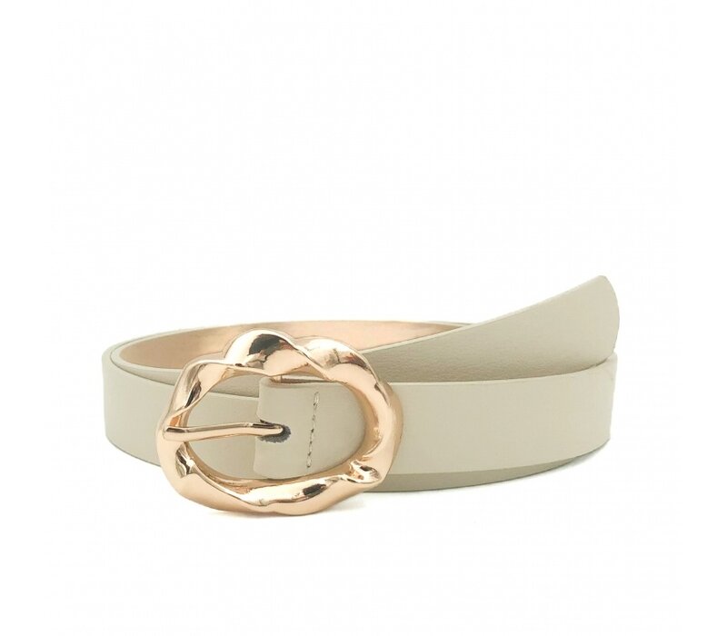 Joss Mode Beige 2.5cm brede vegan leer riem met gouden gesp .