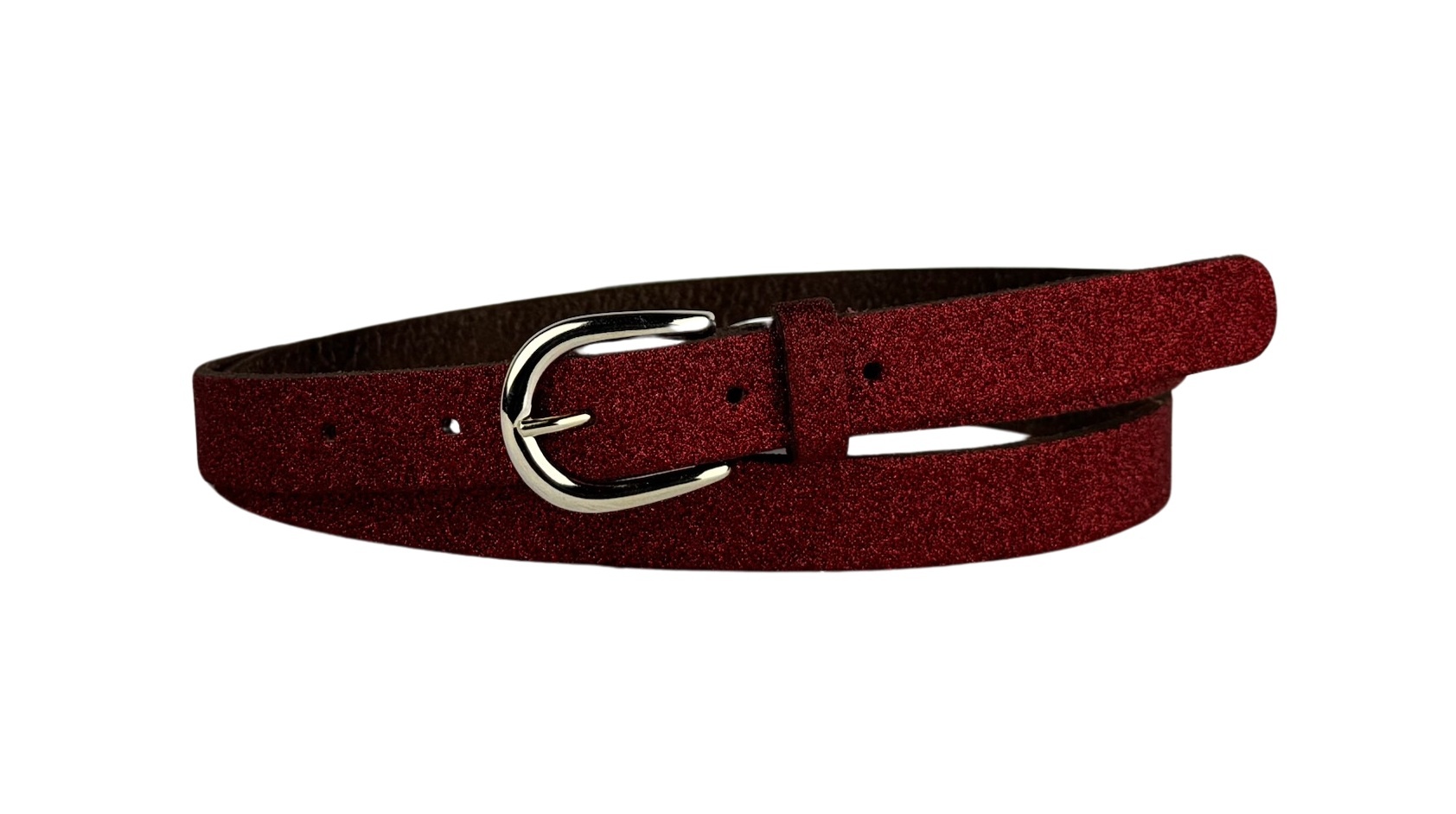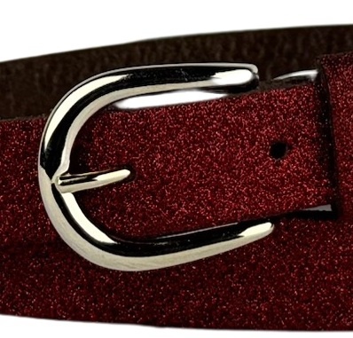 Elvy Fashion rode glitter riem. 2cm breed met gouden gesp.