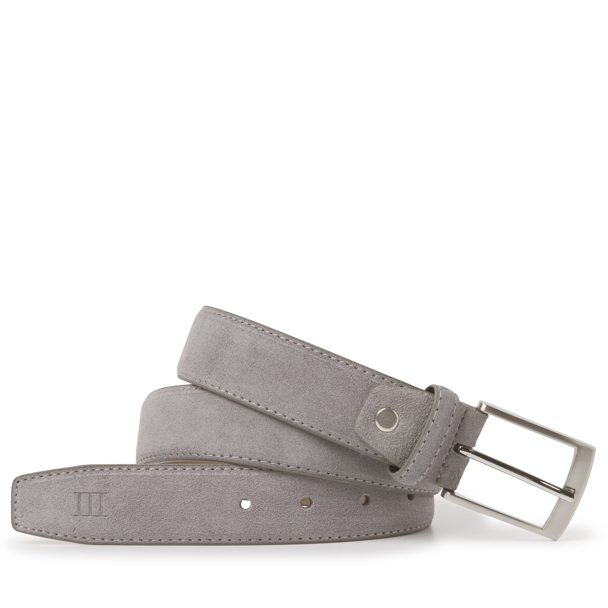 Mooie grijze suede riem van hoge kwaliteit, standaard geleverd in luxe geschenkverpakking. De riem is 35mm breed en tonaal gestikt, en zoals alle TRESANTI riemen eenvoudig korter te maken.