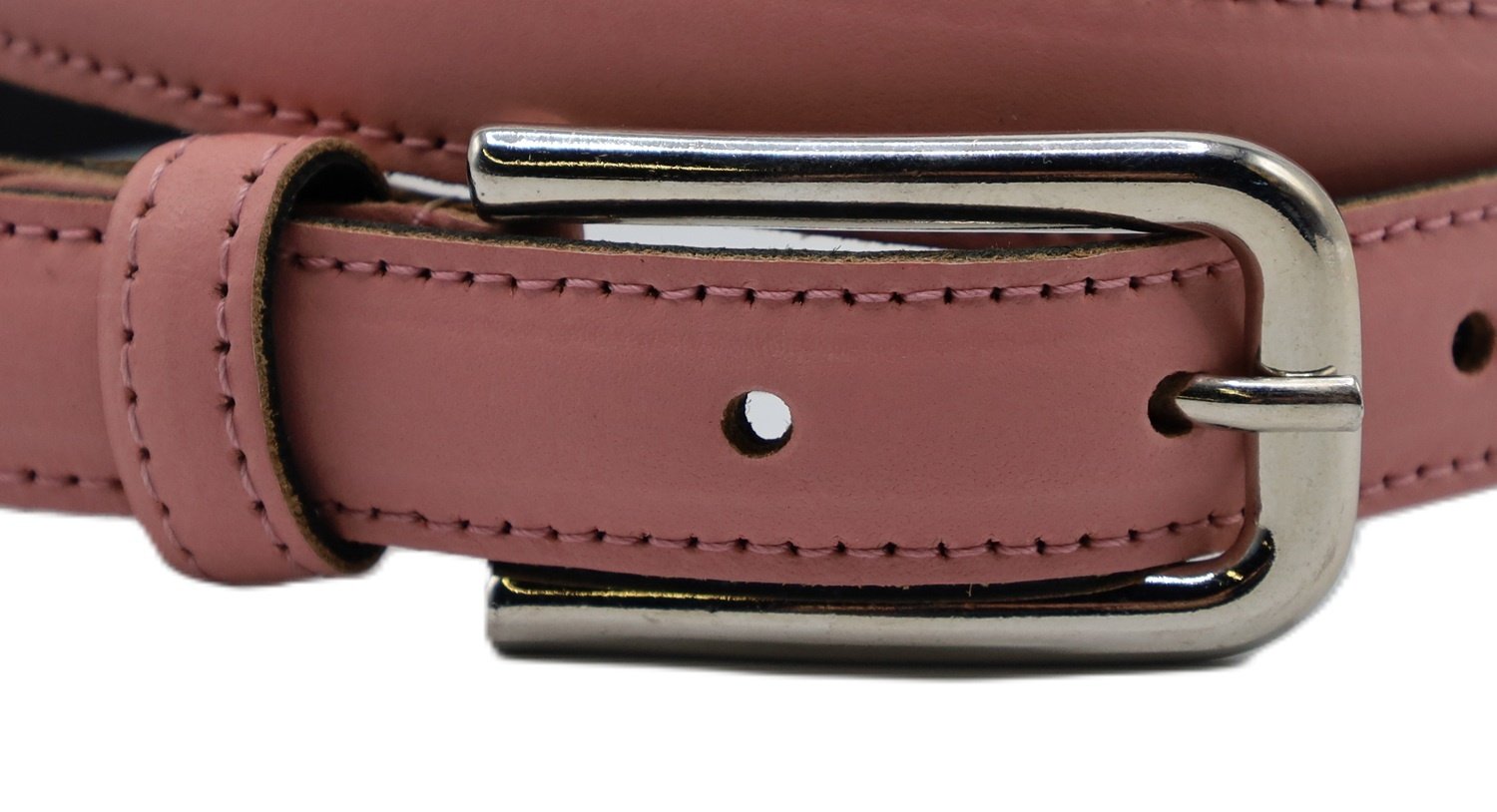 Roze Italiaans leren damesriem. 2cm breed met een fantastische afwerking en nikkelvrije gesp.